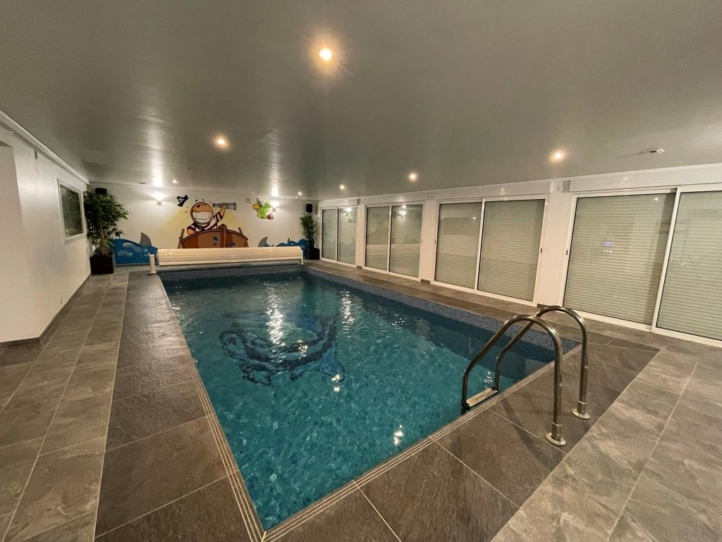 La maison dispose également d'une piscine intérieure chauffée et d'une belle terrasse extérieure, parfaite pour profiter des beaux jours et organiser des barbecues ou des soirées en plein air. La cuisine est entièrement équipée et permet de préparer de délicieux repas pour vos invités.